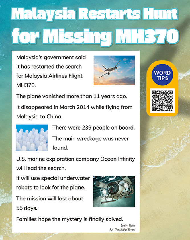 - 1. What flight has Malaysia restarted the search for?