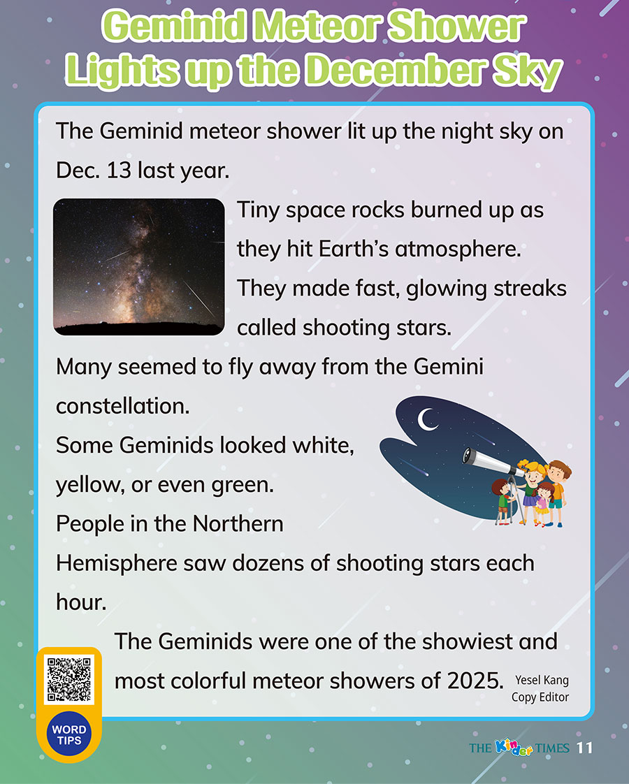 1. When did the meteor shower happen? 2. What are shooting stars?